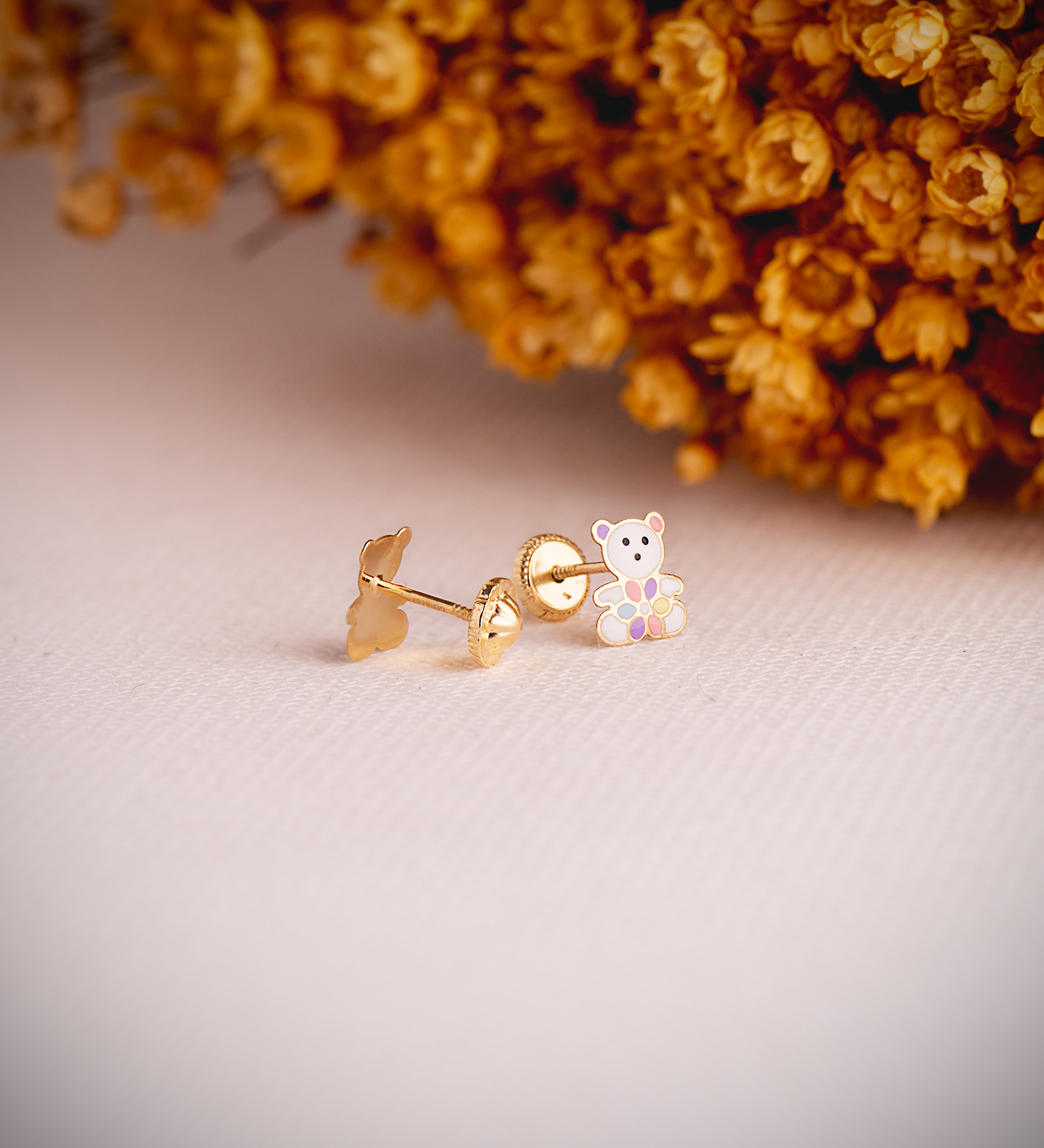 18K PENDIENTES ORO AMARILLO OSOS ESMALTADOS. MEDIDA: 7 X 6 MM. CIERRE TUERCA
