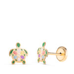 18K PENDIENTES ORO AMARILLO TORTUGAS ESMALTADAS. MEDIDA: 7,5 X 6,5 MM. CIERRE TUERCA