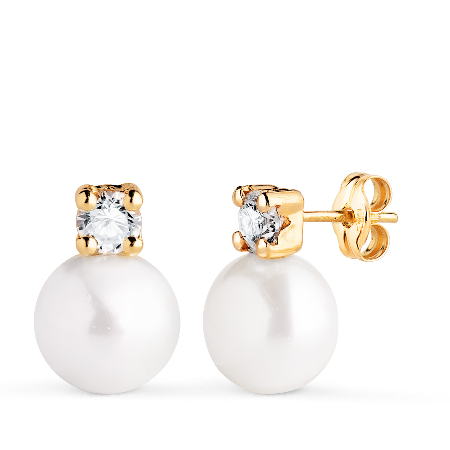 18K PENDIENTES ORO AMARILLO TU Y YO PERLA CON CIRCONITA, MEDIDA: 13 X 9 MM, CIERRE PRESION