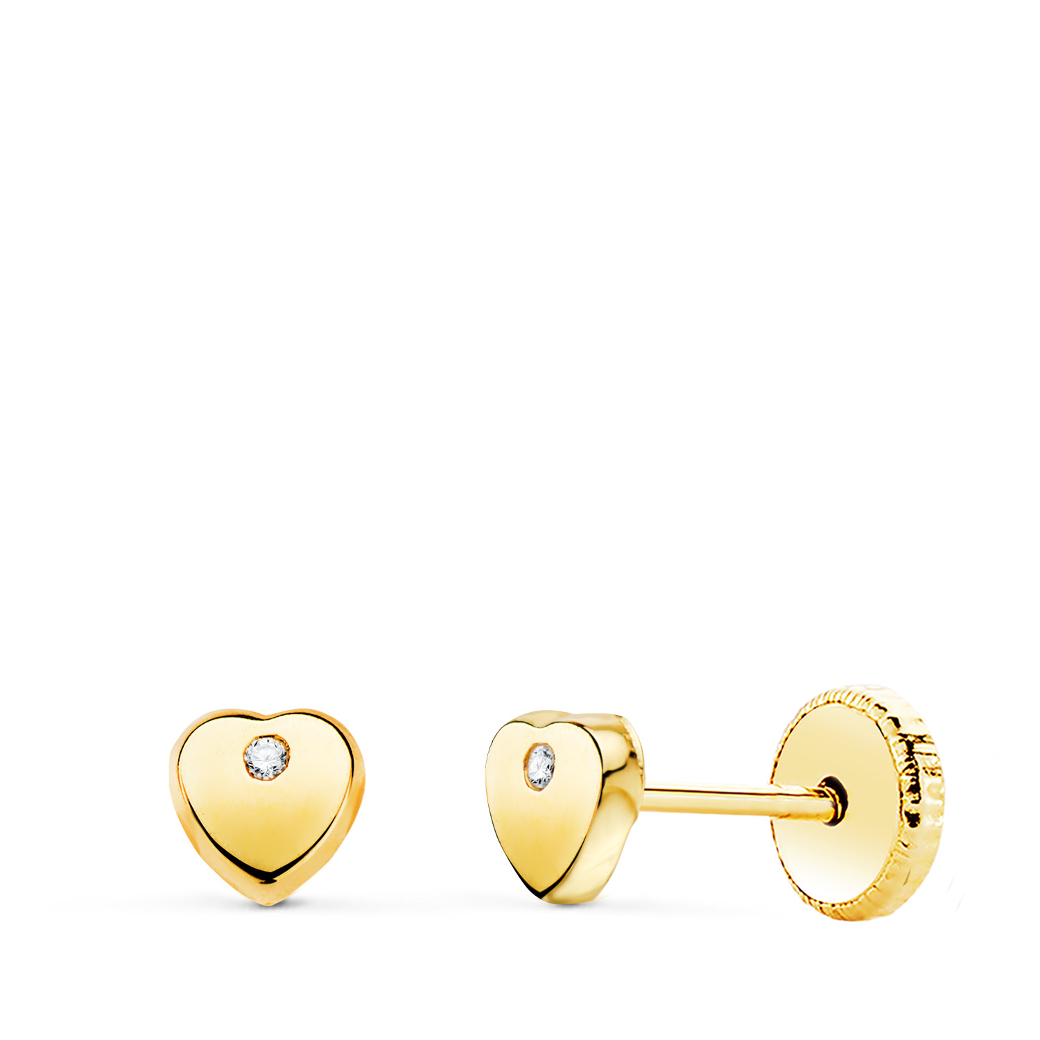 18K PENDIENTES ORO AMARILLO CORAZON CON CIRCONITA BRILLO 4X4 MM, CIERRE TUERCA