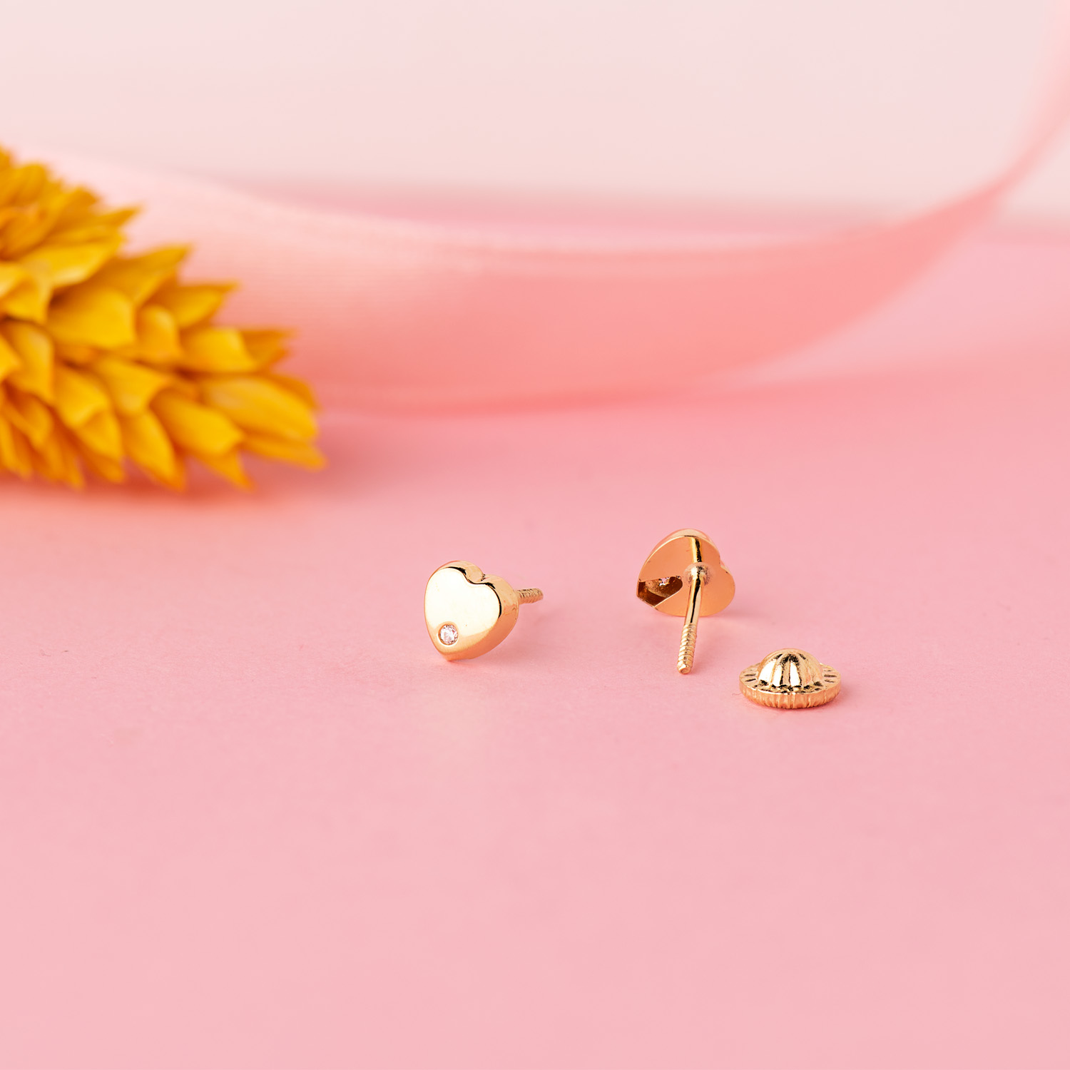 18K PENDIENTES ORO AMARILLO CORAZON CON CIRCONITA BRILLO 5X5 MM, CIERRE TUERCA