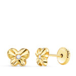 18K PENDIENTES ORO AMARILLO MARIPOSA CON CIRCONITA 6,5 X 5 MM, CIERRE TUERCA