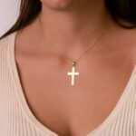 18K CRUZ ORO AMARILLO BRILLO Y MATE SIN CRISTO 32X20 MM