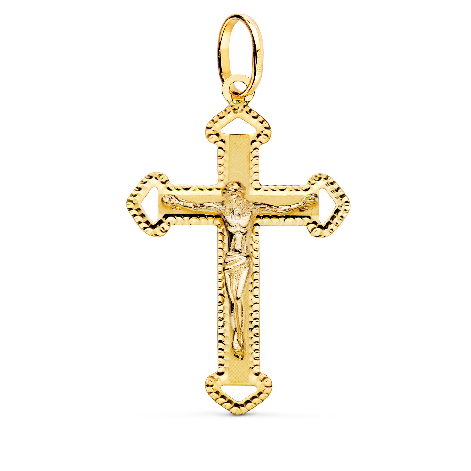 18K CRUZ ORO AMARILLO CON CRISTO TALLADA 35X22 MM