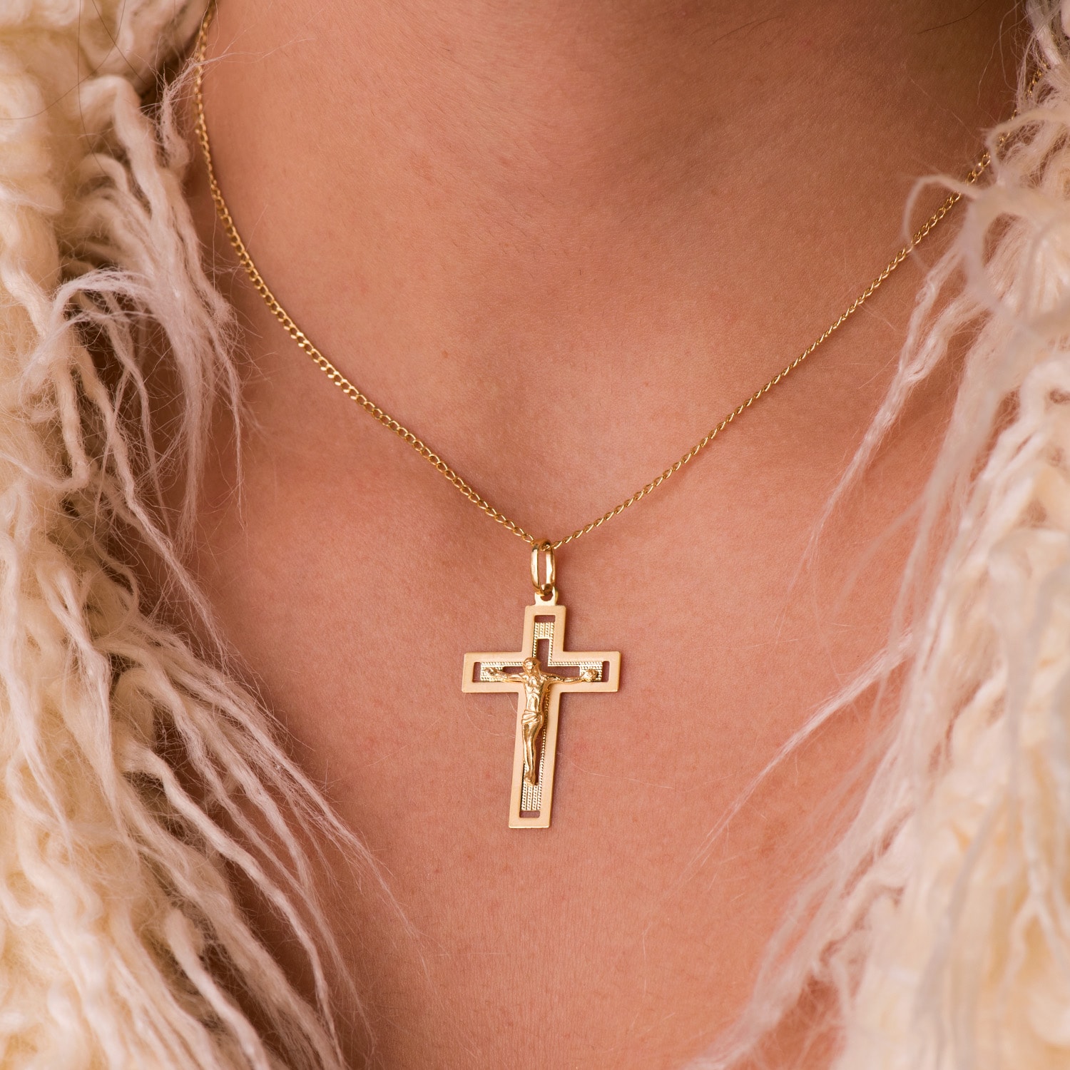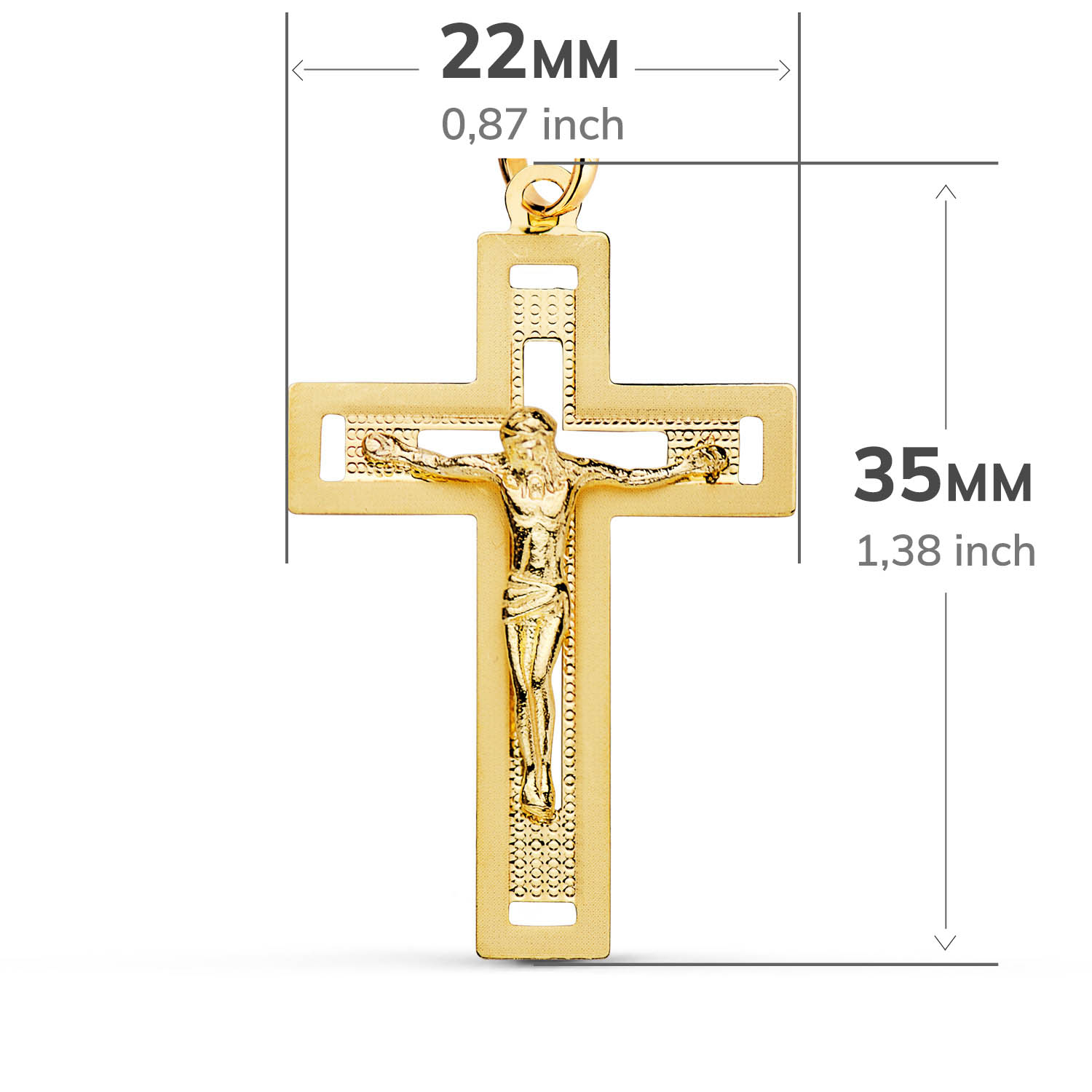 18K CRUZ ORO AMARILLO CON CRISTO TALLADA 35X22 MM