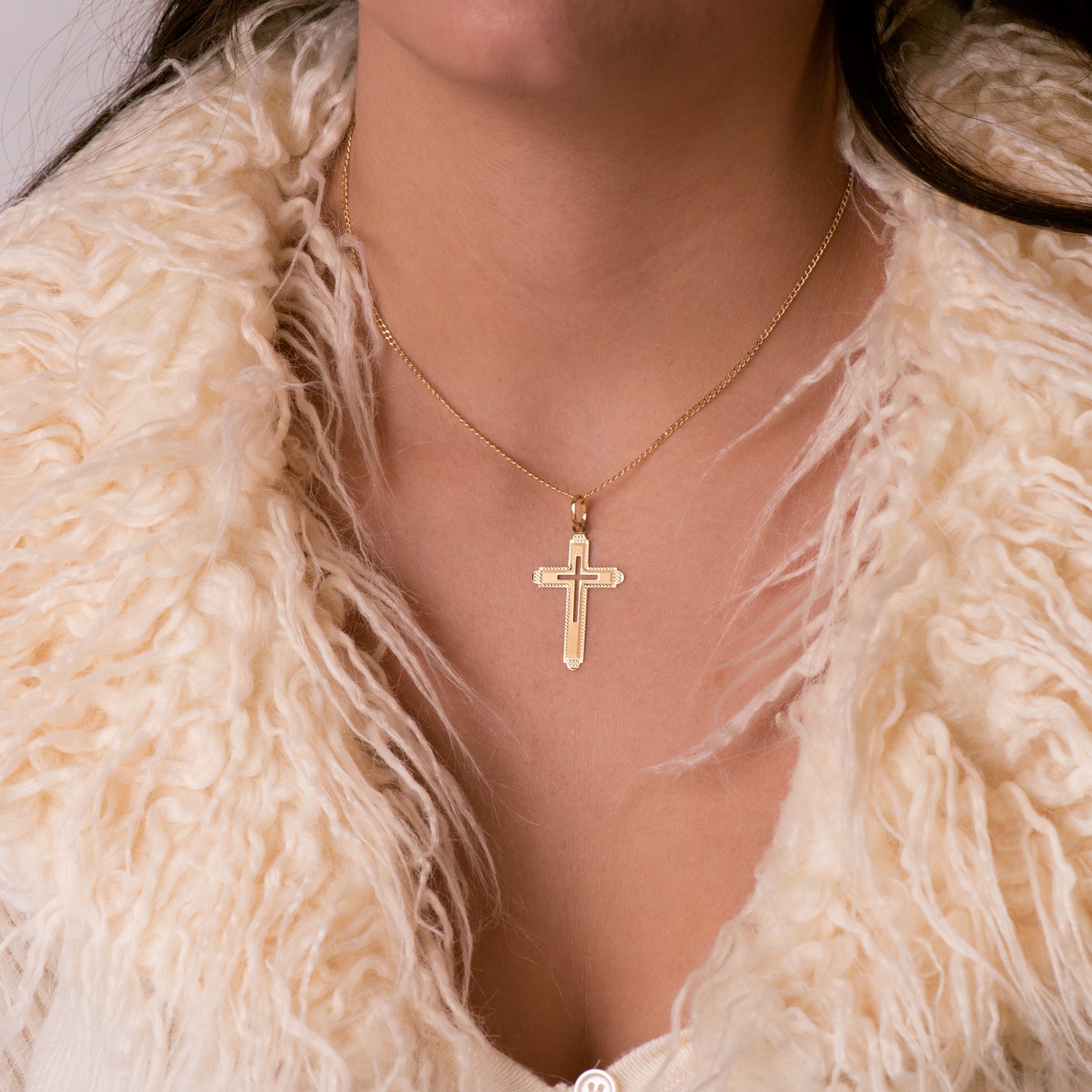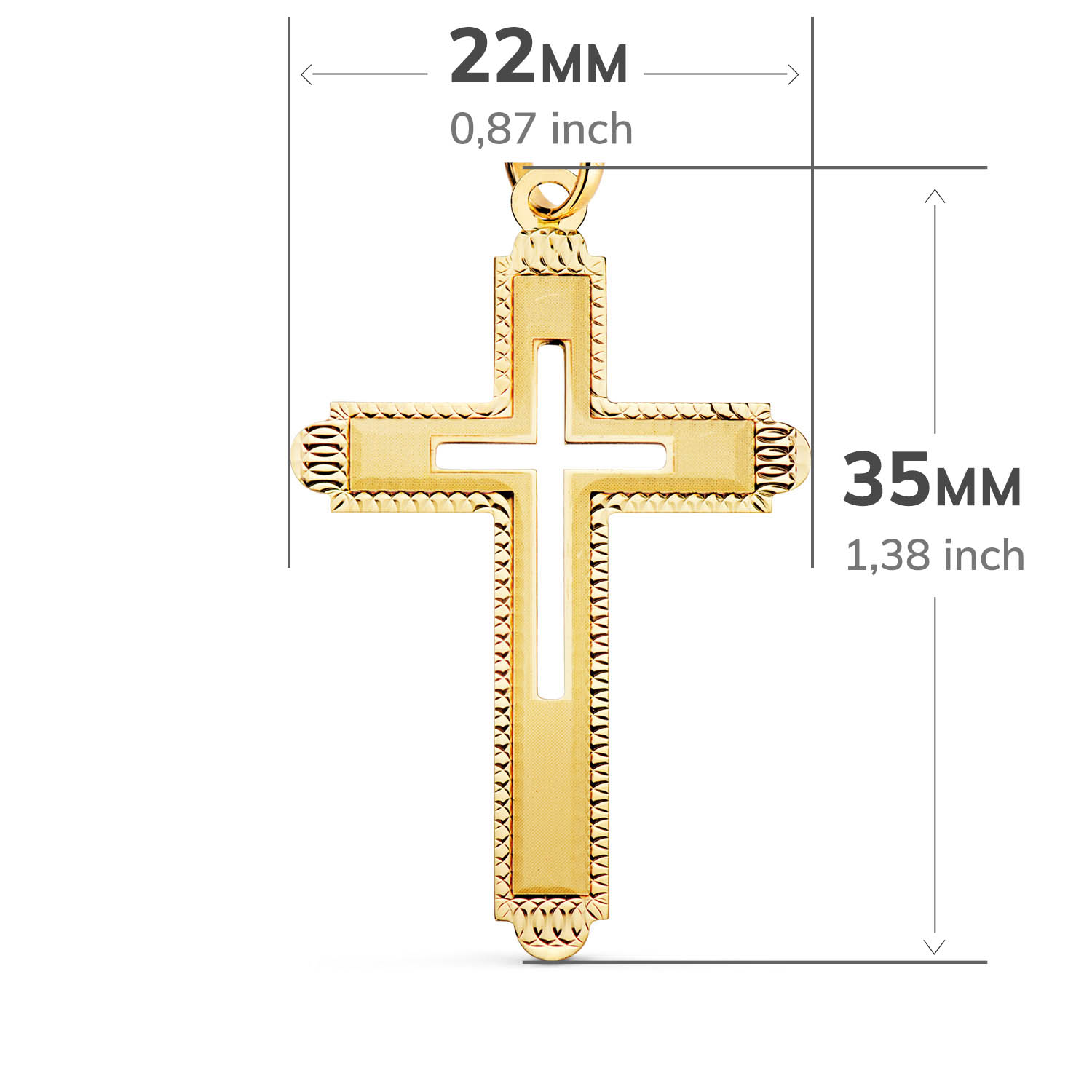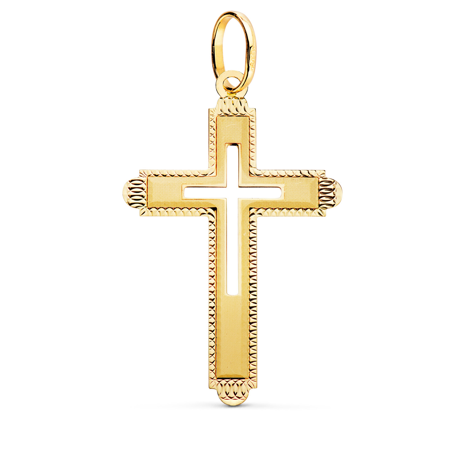 18K CRUZ ORO AMARILLO SIN CRISTO TALLADA Y MATIZADA 35X22 MM