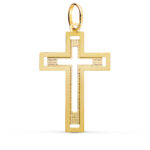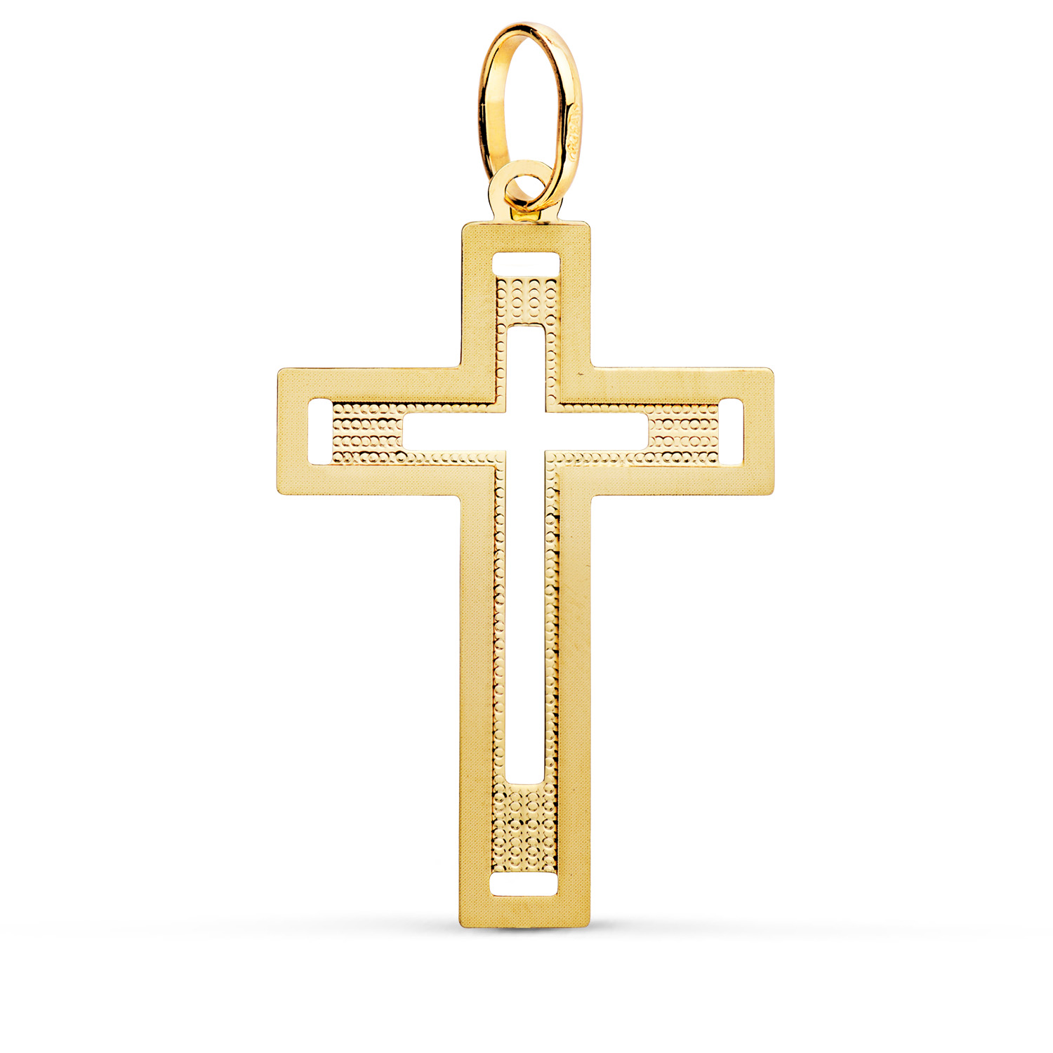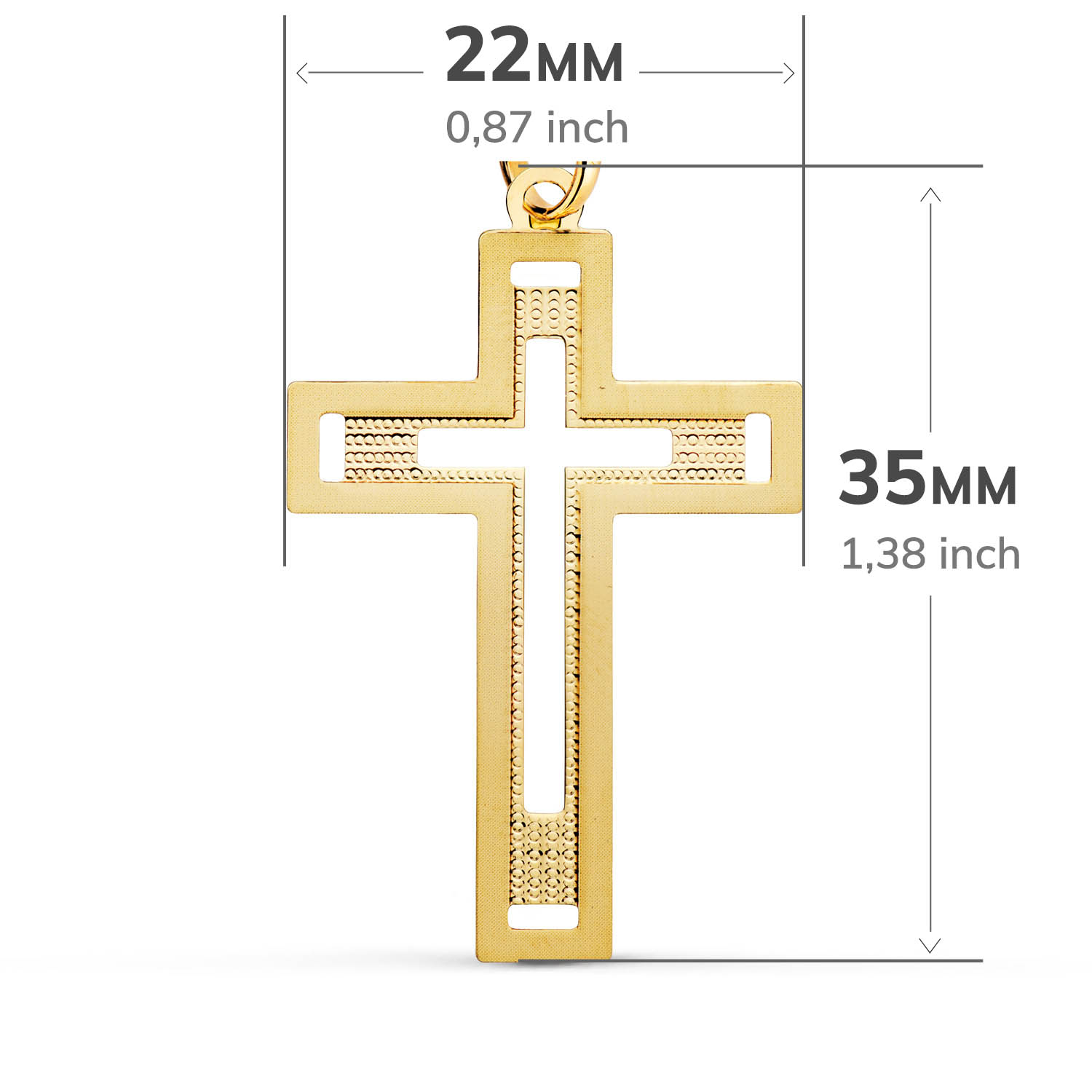 18K CRUZ ORO AMARILLO SIN CRISTO TALLADA Y MATIZADA 35X22 MM