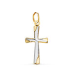 18K CRUZ ORO BICOLOR LISA EN BRILLO HUECA 21 X 12 MM