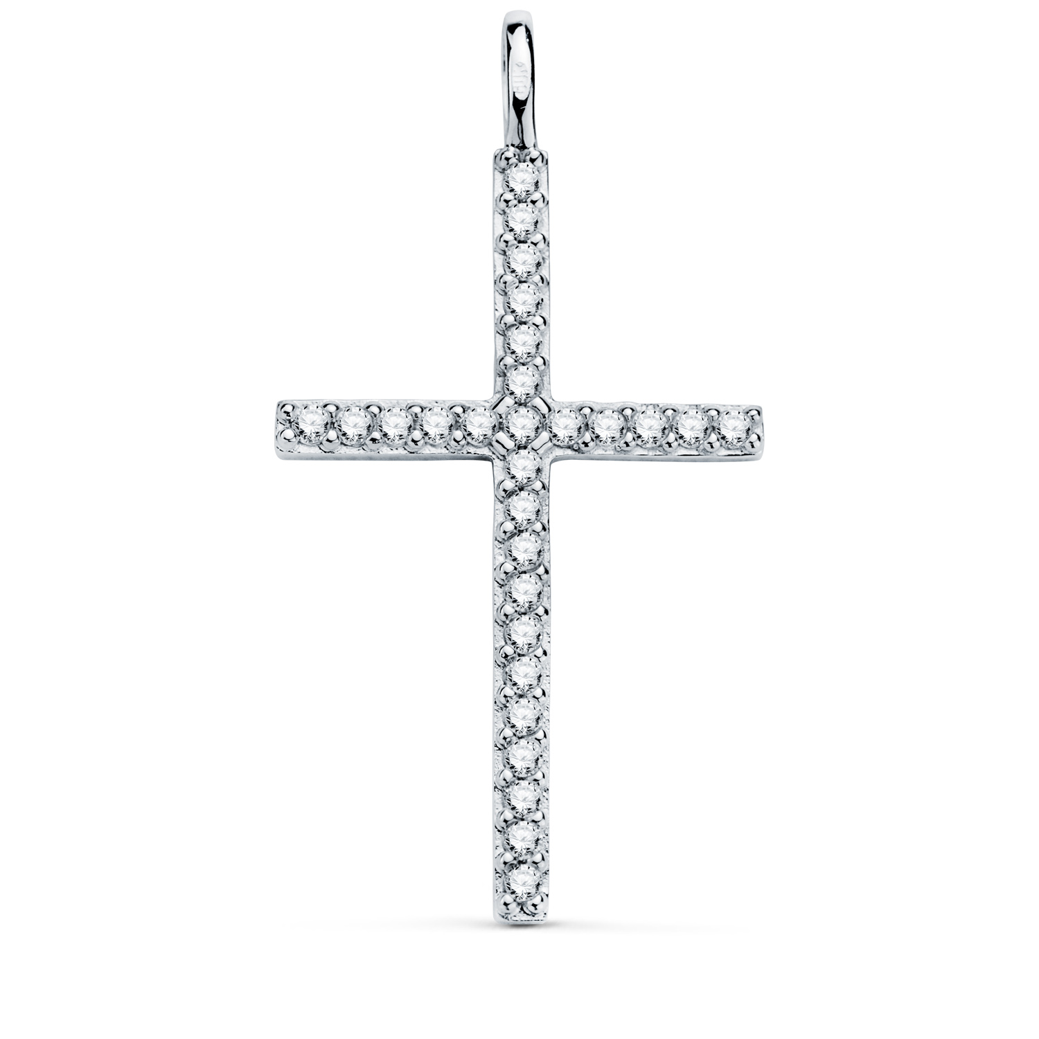 18K CRUZ ORO BLANCO CON CIRCONITA BLANCAS, 36 X 19 MM, ANILLA FIJA