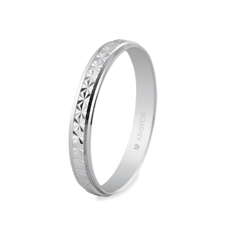 Alianza de plata 925 de diseño original Argyor referencia 108 de 3 milímetros de anchura. Esta joya tiene un acabado mate y brillante y un interior plano. Disponible también en diversas versiones en oro.