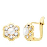 18K PENDIENTES ORO AMARILLO FLOR CON CIRCONITA Y PERLA 8X8 MM CATALAN