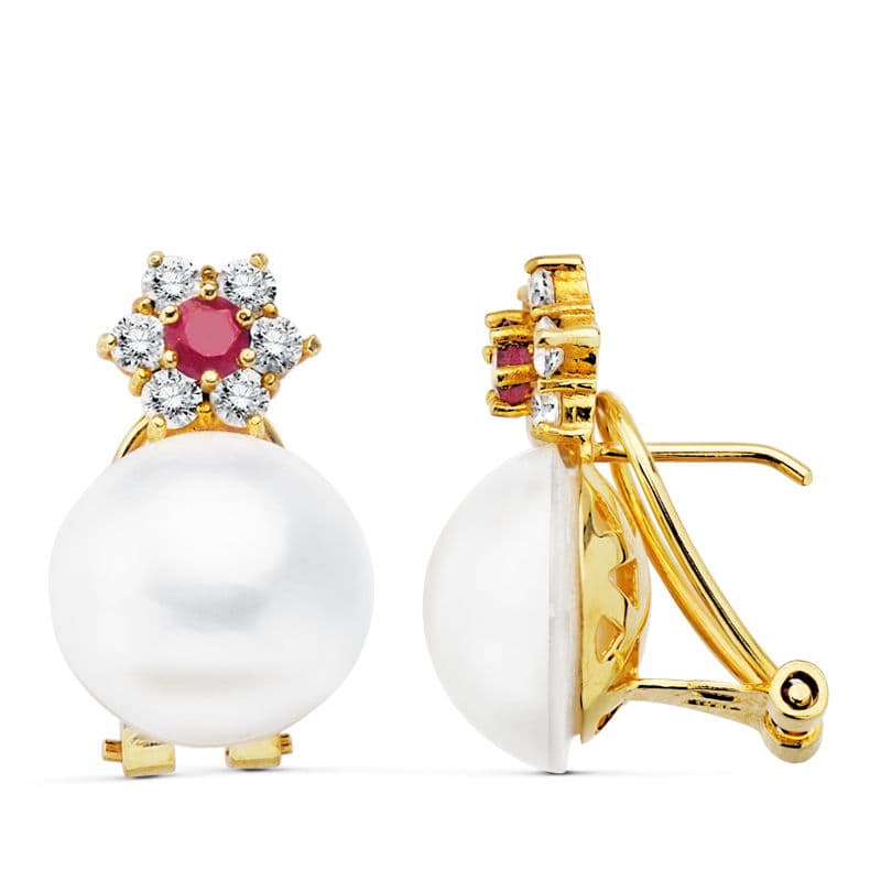 18K PENDIENTES ORO AMARILLO PERLA JAPONESA 21X13 MM CIERRE OMEGA