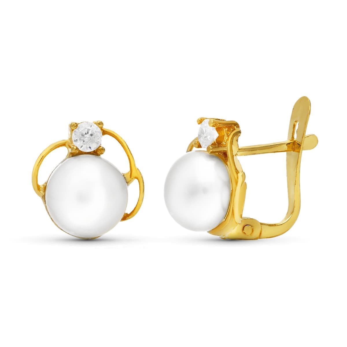 18K PENDIENTES ORO AMARILLO PERLA Y CIRCONITA 9X9 MM CIERRE CATALAN