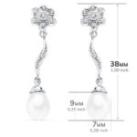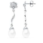 18K PENDIENTES ORO BLANCO PERLA 9X7 MM FLOR 38X8 MM CIERRE PRESION
