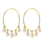 18K AROS ORO AMARILLO HILO DE 20 MM CON 5 COLGANTES CIRCONITA BLANCAS