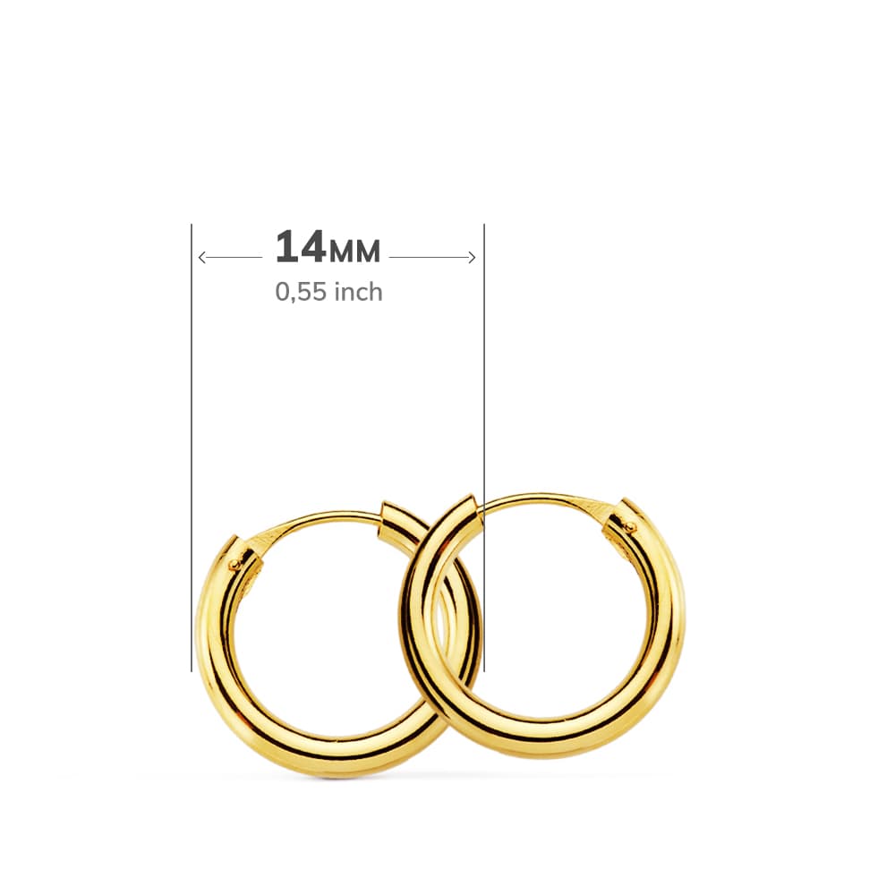 18K AROS ORO AMARILLO REDONDOS LISOS LIGEROS 14X2 MM