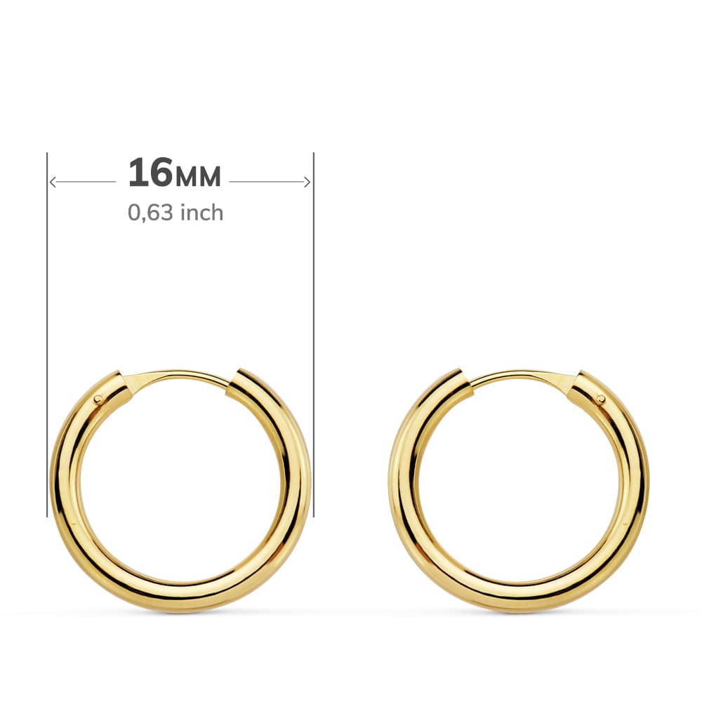 18K AROS ORO AMARILLO REDONDOS LISOS LIGEROS 16X2 MM