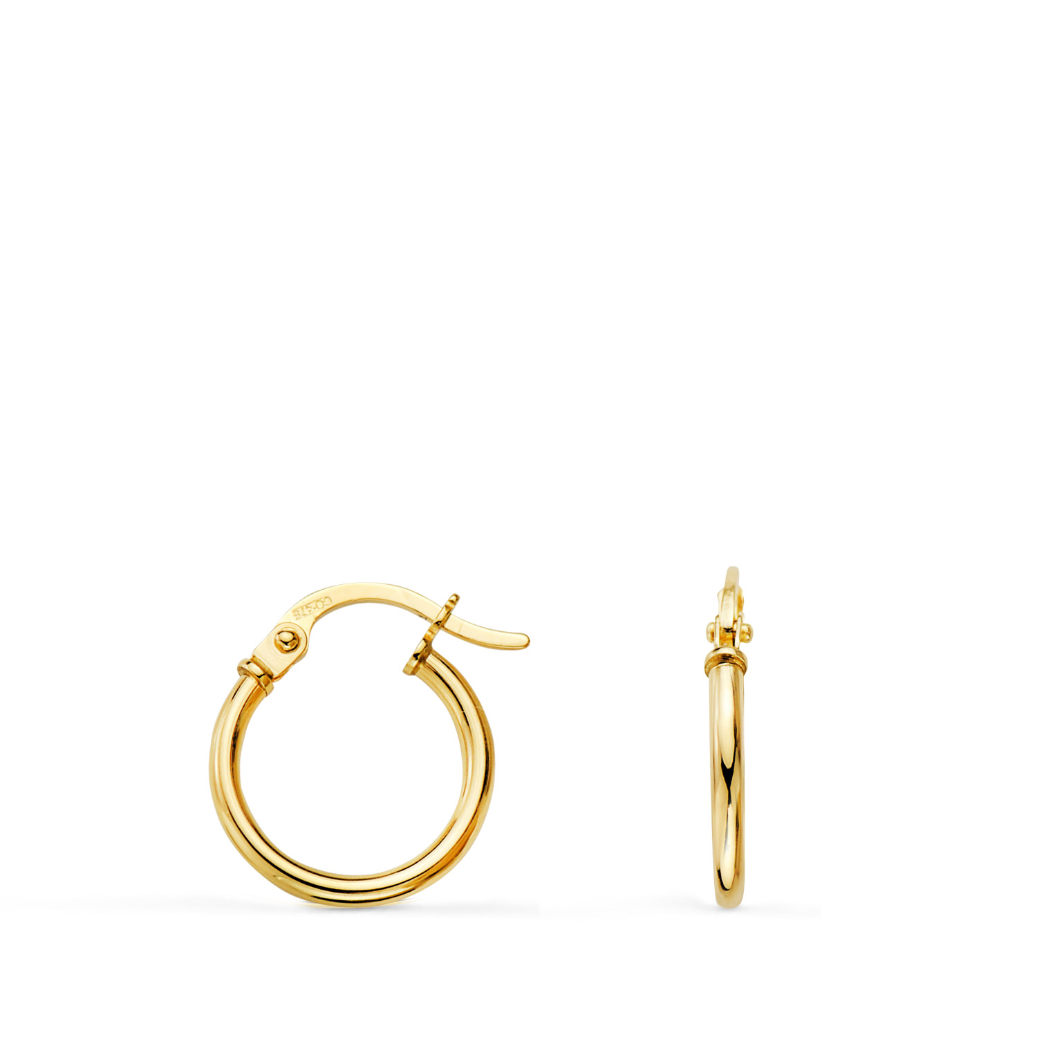 18K PENDIENTES AROS CRIOLLAS ORO AMARILLO HUECOS REDONDOS TUBO REDONDO 13 MM, GROSOR 1,5 MM