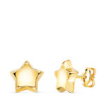 18K PENDIENTES ORO AMARILLO ESTRELLA CONCAVO EN BRILLO 8X8 MM, CIERRE PRESION