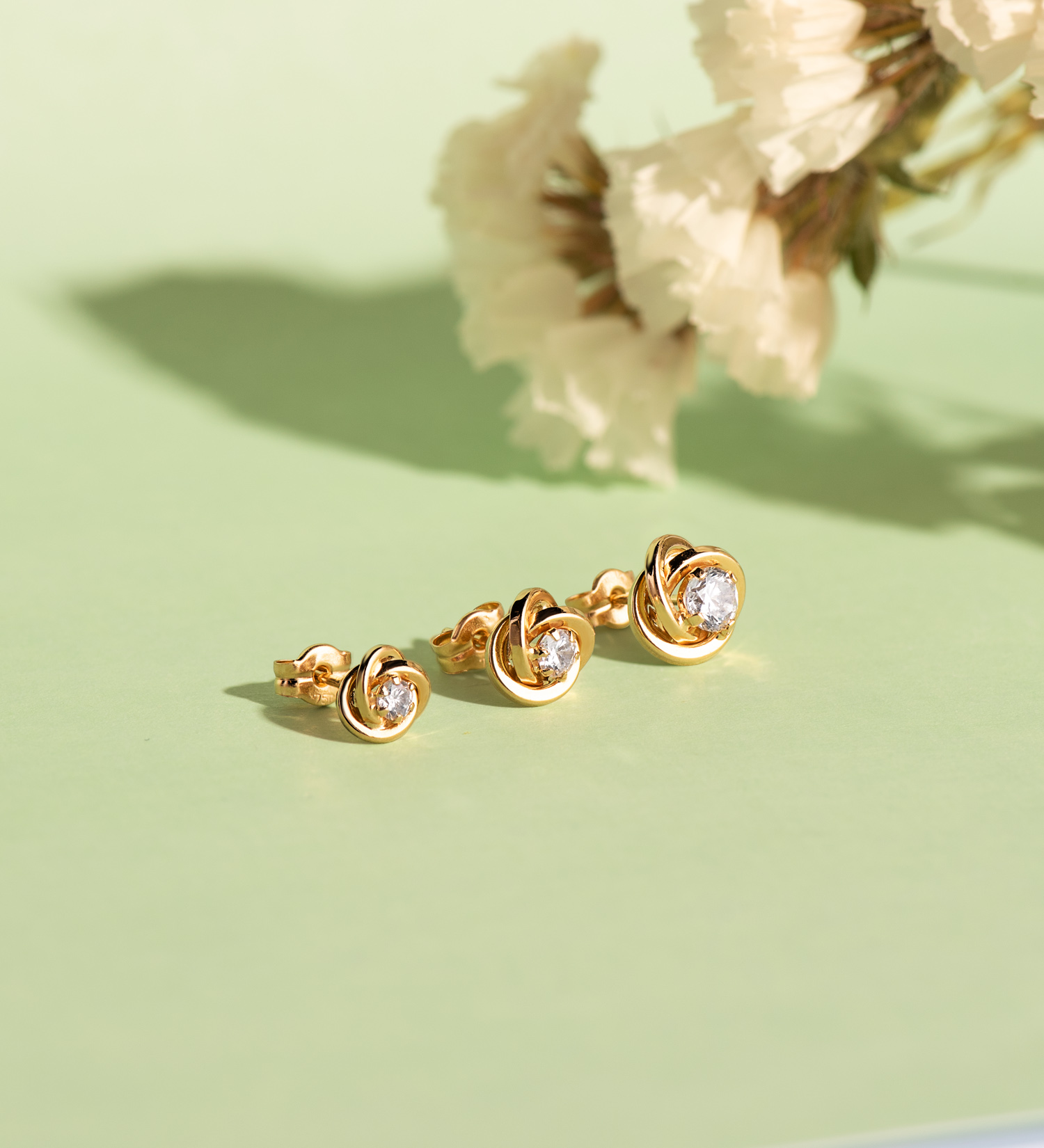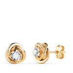 18K PENDIENTES ORO AMARILLO NUDO CON CIRCONITA, MEDIDA: 8X8 MM, CIERRE PRESION