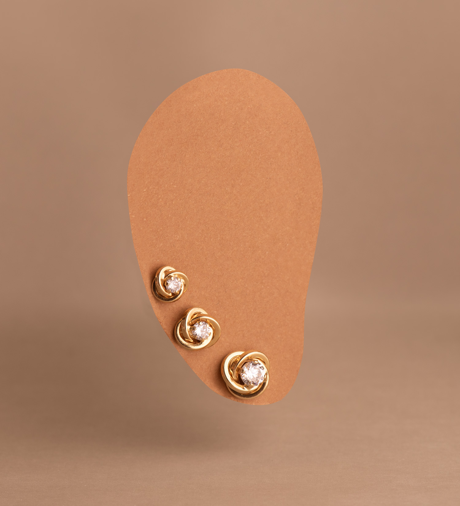 18K PENDIENTES ORO AMARILLO NUDO CON CIRCONITA, MEDIDA: 8X8 MM, CIERRE TUERCA