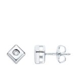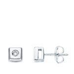 18K PENDIENTES CHATON CUADRADO ORO BLANCO DIAMANTES LABORATORIO 0,040 QTS, G-VS2 CIERRE PRESION 5,5 MM
