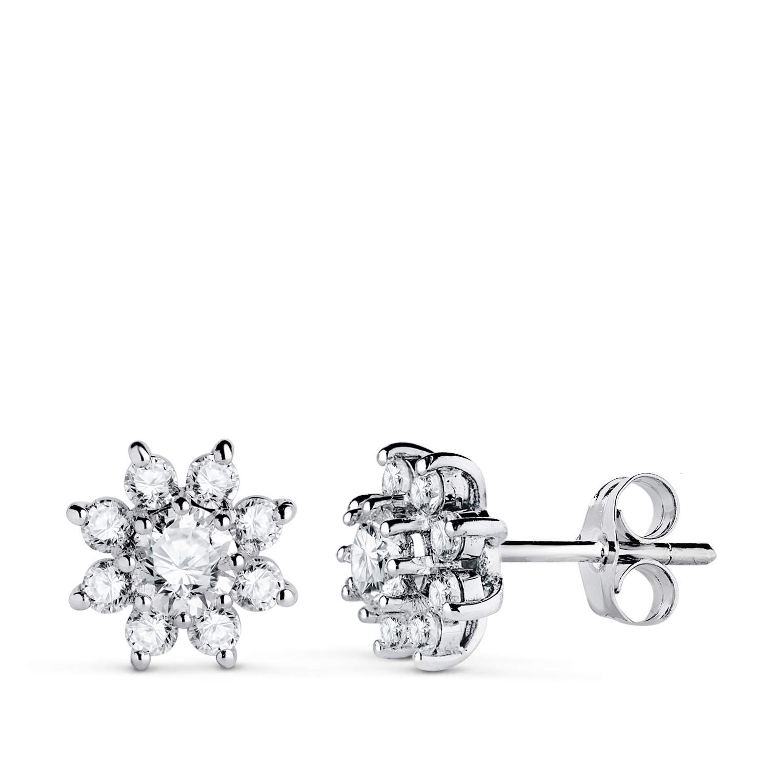 18K PENDIENTES ORO BLANCO CUAJO CON 18 DIAMANTES LABORATORIO 1,00 QTES, G-VS2, 9X9 MM, CIERRE PRESION