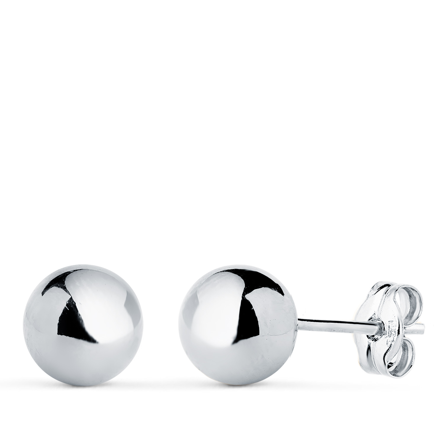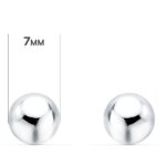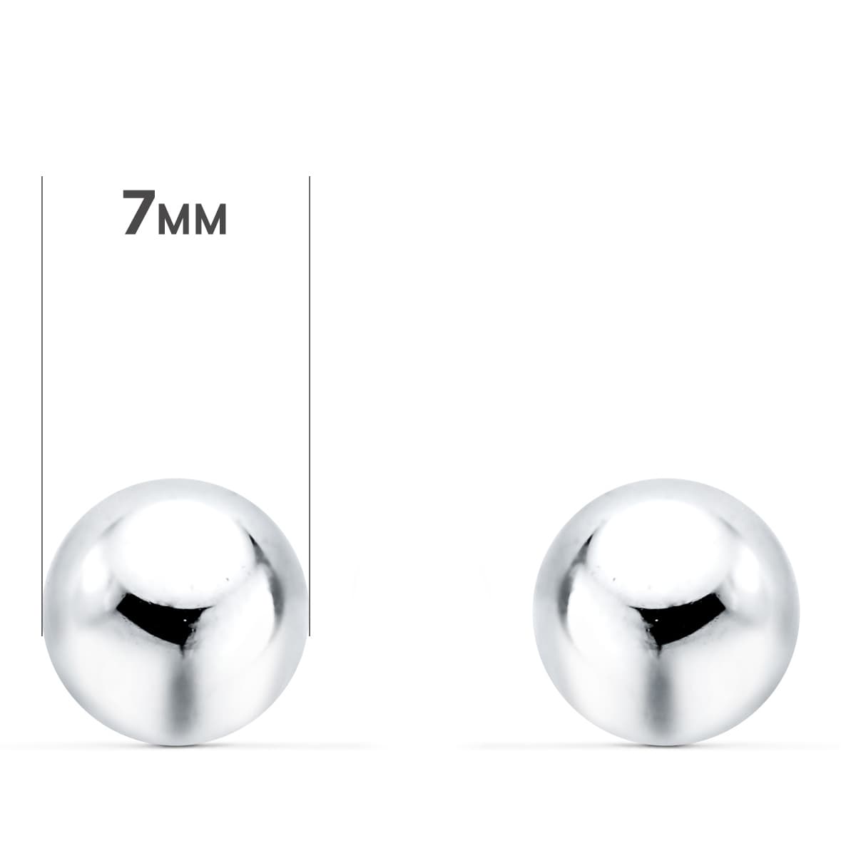 18K PENDIENTES ORO BLANCO BOLA LISA BRILLA HUECA, ANCHO: 7 MM, CIERRE PRESION