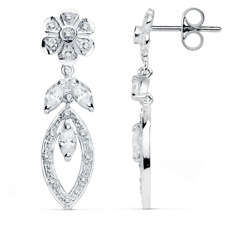 18K PENDIENTES ORO BLANCO CIRCONITA 30X8 MM CIERRE PRESION