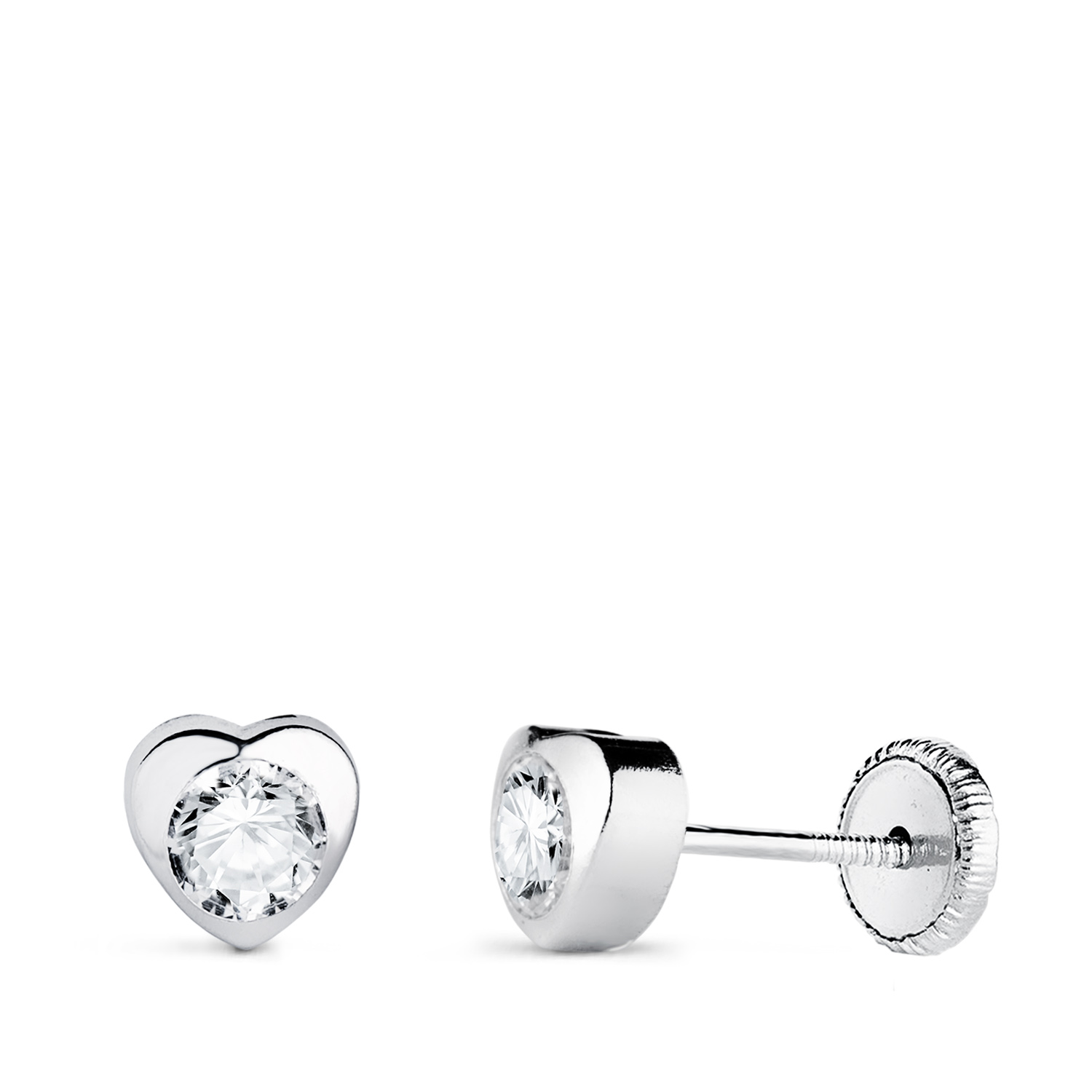 18K PENDIENTES ORO BLANCO CORAZON CON CIRCONITA, MEDIDA: 5 X 5 MM CIERRE TUERCA