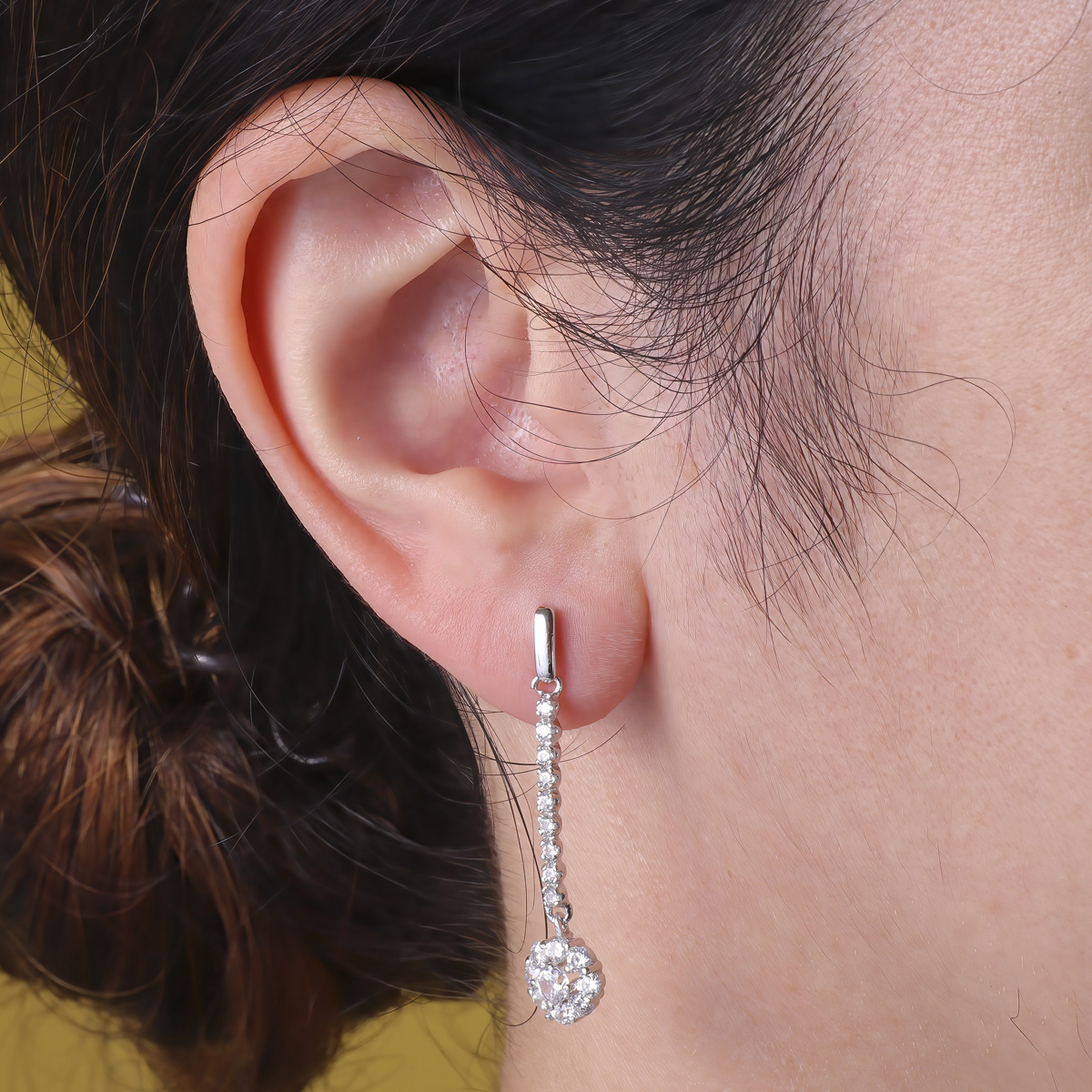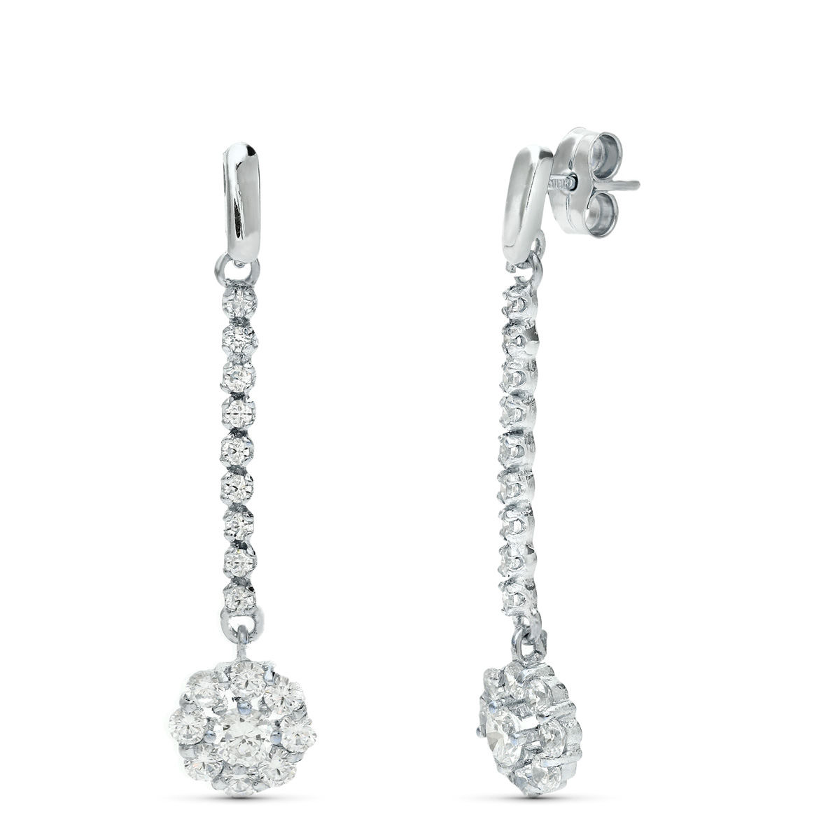 18K PENDIENTES ORO BLANCO JUEGO NOVIA PIÑA CIRCONITA 38X7 MM PRESION