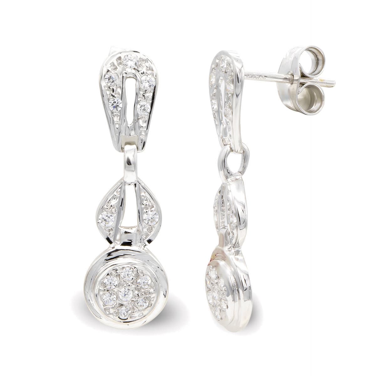 18K PENDIENTES ORO BLANCO LARGOS Y CIRCONITA CIERRE PRESION