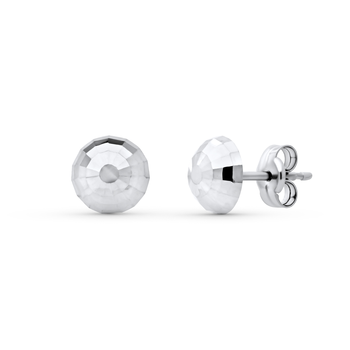 18K PENDIENTES ORO BLANCO MEDIA BOLA TALLADA 6 MM