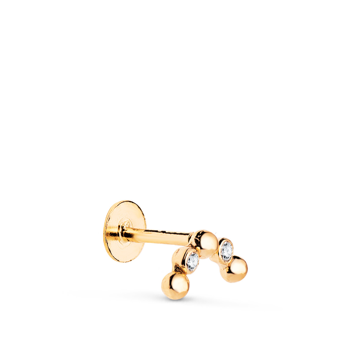 18K PIERCING DE OREJA ORO AMARILLO ARCO CON CIRCONITAS Y BOLAS, GRUESO BARRA 1,20 MM, MEDIDA: 8 X 4,5 MM, CIERRE TUERCA