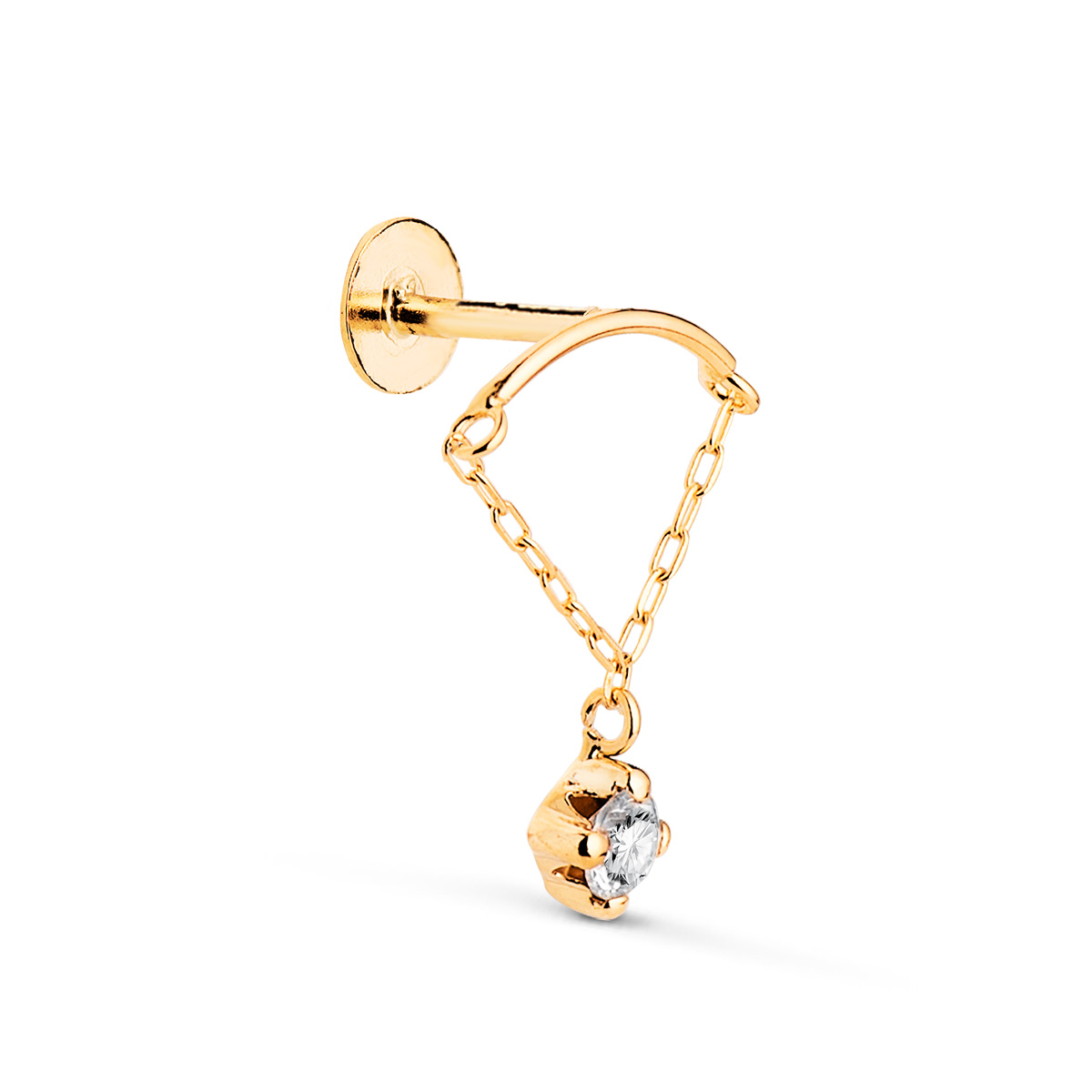 18K PIERCING DE OREJA ORO AMARILLO CURVA CON CADENA Y CIRCONITA, GRUESO BARRA 1,20 MM, MEDIDA: 15 X 12 MM, CIERRE TUERCA