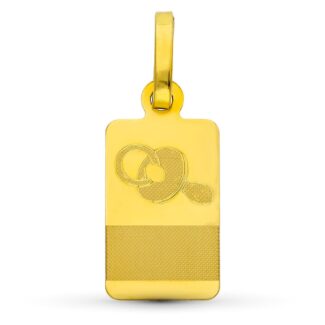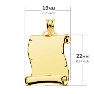 18K PLACA CHAPA COLGANTE PERGAMINO ORO AMARILLO LISO BRILLO 22X19 MM