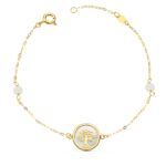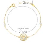 18K PULSERA ORO AMARILLO NACAR CON ARBOL DE LA VIDA 12 MM Y BOLAS JADE 4 MM CADENA 18 2,5 CM