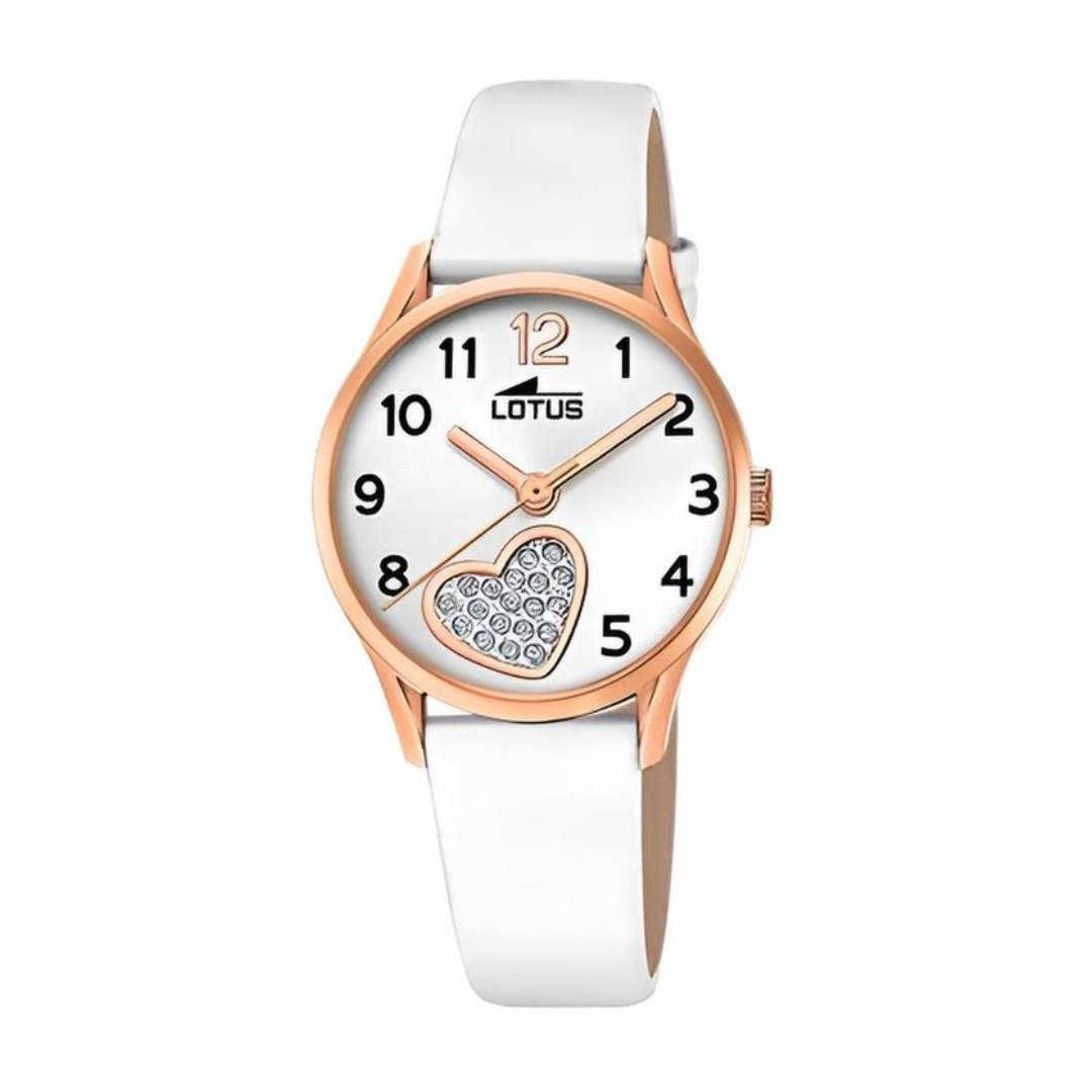 El Reloj Lotus 18407/D es un accesorio elegante y actual, ideal como regalo de comunión o cumpleaños para niñas y cadetes. Pertenece a la popular línea Junior de Lotus, conocida por combinar diseños atractivos y juveniles con la calidad y durabilidad que los padres esperan. Este modelo en particular se caracteriza por su correa de piel blanca y un detalle de corazón con circonitas en la esfera, lo que le otorga un toque especial y brillante. Frecuentemente se vende en un set que incluye una pulsera de regalo a juego.