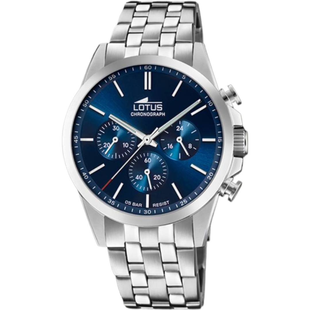 El RELOJ LOTUS CHRONO 18989/2 AZUL CORREA DE ACERO INOXIDABLE 316L es un reloj de lujo que combina funcionalidad y estilo en un solo paquete. Este reloj es una pieza de arte que se destaca por su diseño elegante y sofisticado, con una caja de acero inoxidable 316L que le da un toque de clase y durabilidad.