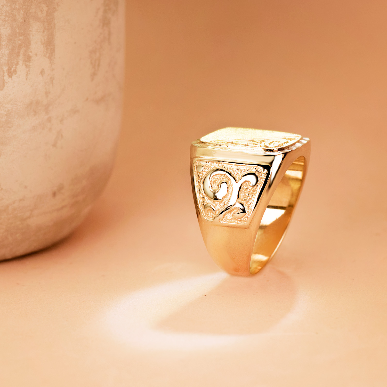 18K SELLO ORO AMARILLO CABALLERO MACIZO TALLADO BRILLO CABEZA: 20X19 MM