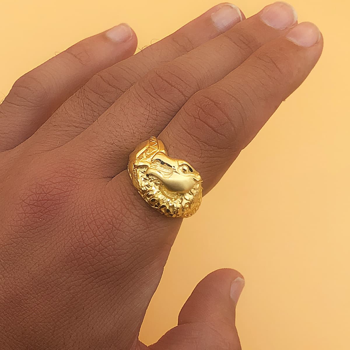 18K SELLO ORO AMARILLO MACIZO DRAGON TALLADO ANCHO 20 MM