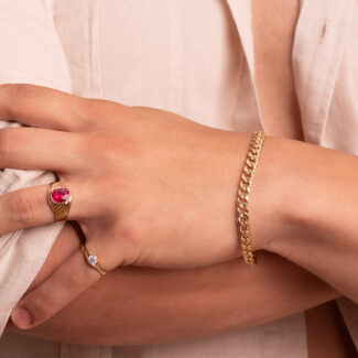18K SOLITARIO ORO AMARILLO MACIZO CON MOTIVOS Y CIRCONITA DE 3 MM