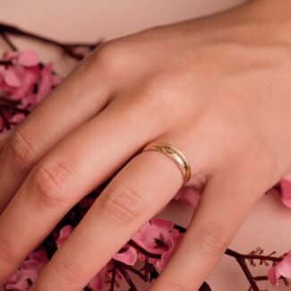 18K ALIANZA ORO AMARILLO BRILLO Y BORDES TALLADOS, ANCHO 4 MM