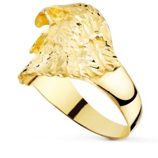 18K SELLO MACIZO ORO AMARILLO AGUILA CALVA AMERICANA TALLADA ANCHO 19 MM