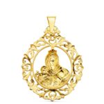 18K MEDALLA ORO AMARILLO VIRGEN DEL CARMEN ORLA FILIGRANA 37X30 MM