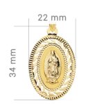 18K MEDALLA ORO AMARILLO VIRGEN GUADALUPE CERCO CALADO Y TALLADO, 34 X 22 MM